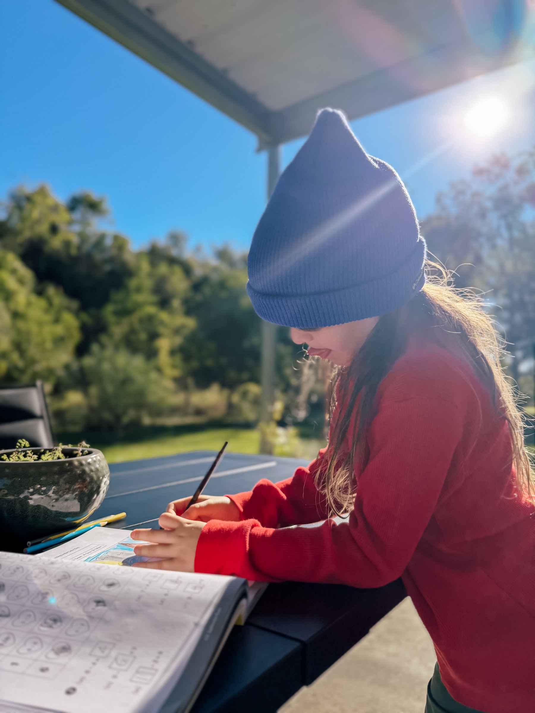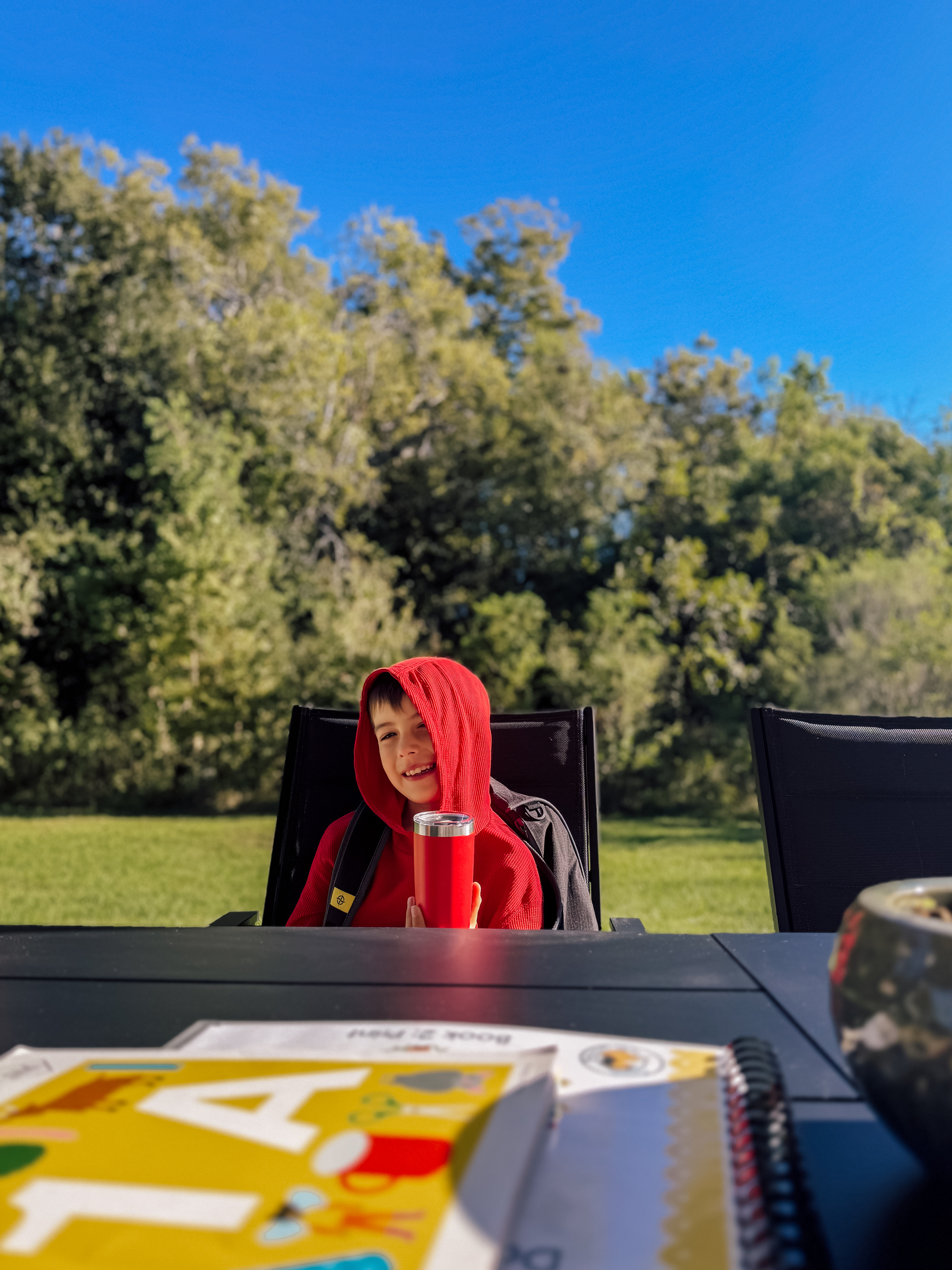 Started the day yesterday (and spent most of the rest of it) outside (in this cool and windy Louisiana weather) with school (and coffee). So refreshing.